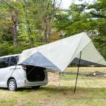 「ウェイポイントタープ」はクルマの後部に取り付け、テールゲートキャンプを楽しむもの。サイドへの取り付けには工夫が必要なのが少々残念ですが、適度に目隠しをしつつ景色を楽しめる絶妙なデザインは「ウェイポイントタープ」ならでは!