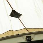 クルマ側にはもう一か所、ポールを立てられるよう補強が施されています。駐車場から離れたキャンプサイトでは、手持ちのポールを使って自立させることができるのも気が利いています。