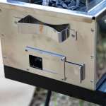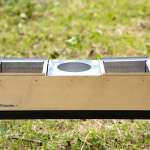 炭火で湯を沸かし、その熱を用いてつまみを炙るという仕組みはほかの野燗炉と同じですが、「炙二郎(あぶりじろう)」では両端にセットした炙二郎の熱で湯を沸かします。