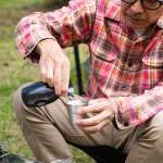 バーナーで湯を沸かし、シェラカップで熱燗をつくるのもいいんですが、やってみると温度調節が結構難しい! 「炙二郎」ならじんわり湯を沸かすのでちょっとくらい目を離してもいい感じに熱燗をつくれます。それに湯沸かしの熱源で炙り料理ができて、湯煎に使った湯も洗い物に使えるなど無駄がありません。