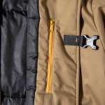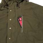 難燃ミリタリーファブリック“BRAZE SHLELD(ブレイズシールド)”を使用した焚き火用の中わた入りコート。自己消火に優れている上に、従来の難燃素材より5倍の強度が特徴。万が一接炎しても事故から身を守ってくれます。