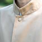ボタンを全閉めしてスタンドカラーにすれば、首元を冷気から保護。ネックウォーマーなどの防寒グッズを火の粉から守りたい時にも役立ちます。手がかじかんで上手く使えない時でも簡単に開け閉めができる、着脱のしやすいスナップボタンを採用しているのもポイント。