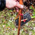 私が最も使うシーンがプルージック・ノットでモノを吊るす方法です。固定ができて、移動もできる。これが一番便利なのです。