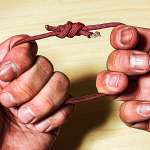 それでは実際に作ってみましょう。今回は「ダブル・フィッシャーマンズ・ノット」という、2本のロープをしっかり結びたい時に重宝する結び方です。