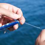 ルアーの前方には糸を結ぶために金属製のワイヤーが丸く突き出たラインアイがあります。このラインアイや、ルアー交換が簡単に行える金具の“スナップ”などへの結び方は多数ありますが、なかでも強度があり比較的簡単に結べるのが「ダブルクリンチノット」。