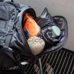 一方で、反対側のサイドポケットにはパッカブルウエアなど細々したものをまとめて入れておけます。こちらもすぐに取り出せるため、防寒具やショッピングバッグを入れておくのにうってつけ。ちなみに、ポータブルスピーカーなど壊れやすいものを保護したいときには、バスタオルやダウンウエアなどを緩衝材として使うのがおすすめです。