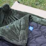ソロ用のテントだったので封筒型寝袋として使いましたが、広げれば190×195cmのブランケットにもなります。ファミキャンなら2〜3人分の寝袋の上にかけてもいいでしょう。