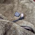 肌に触れる面はふわっふわの起毛で肌触りよし。肩近くに電源ボタンとファスナー付きポケットがあり、ここに手持ちのモバイルバッテリーを入れて付属のコードに挿せば準備完了。