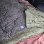 スイッチを入れて1分もすればじんわり温かくなっています。15分後、内側に仕込んだ寝袋もぬくぬくしていたので、低温に切り替えて寝袋に潜り込みました。