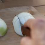 まずは、ぶんぶんチョッパーに入れる前に、食材を切ります。そのままじゃないんだ、という声もありそうですが、大きいまま入れると故障の原因にもなるので注意が必要です。ザクッと切るのはあっという間なので、大して苦になりません。