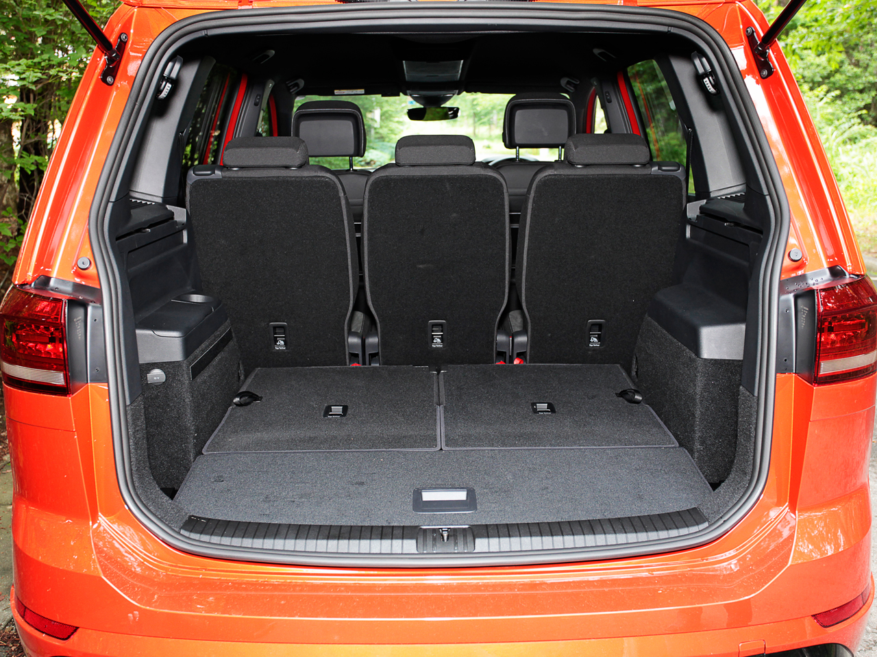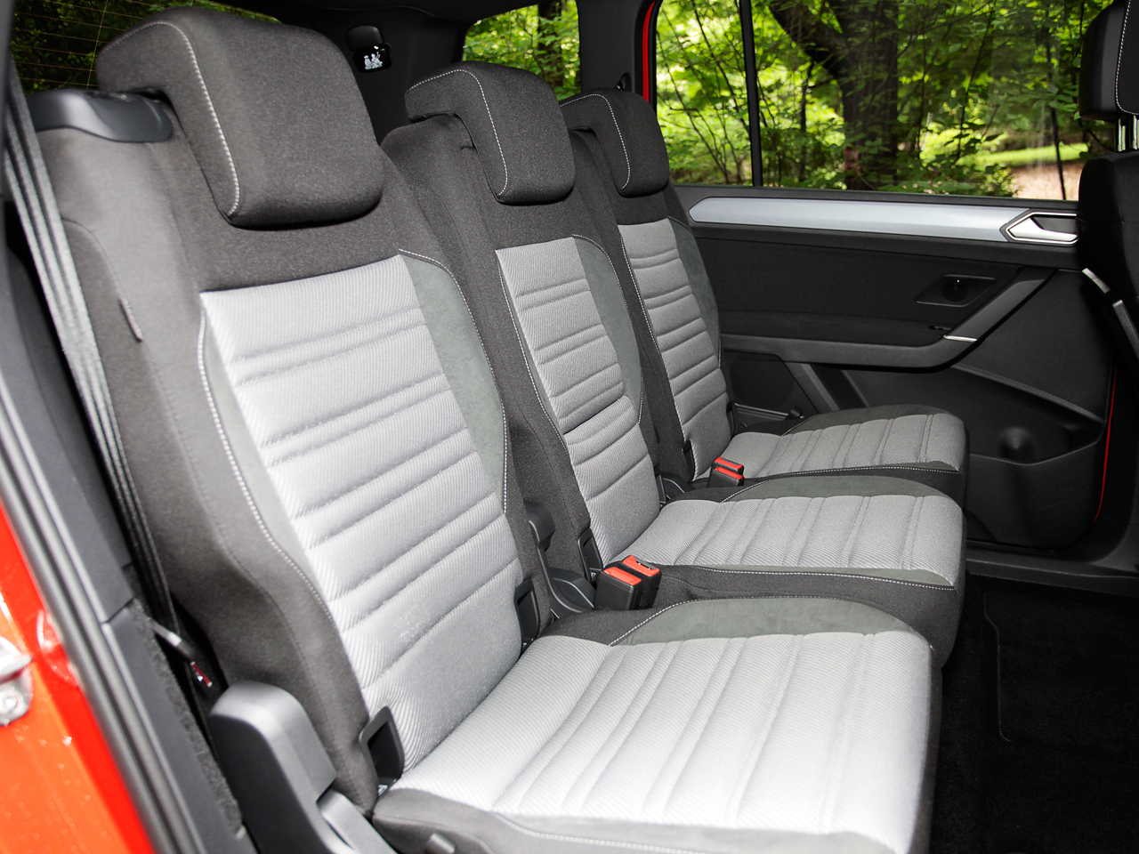 2列目シートは独立式で、フロントシートと遜色ないつくりのイスが3つ並びます。チャイルドシートが組み込まれたトゥーラン自慢の“インテグレーテッドチャイルドシート”は装備されません。前後に最大200mmスライドし、背もたれを前方に倒すことも可能。必要十分なアレンジを確保しています。