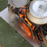 「hako-niwa(ハコニワ) ソロベンチ焚き⽕台」は、カマドモードの底を燃料プレートで底上げすれば、固形燃料やアルコールストーブの五徳にもなりますよ。