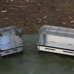 ▲ベンチモード。左が「hako-niwa(ハコニワ) ベンチ焚き⽕台」30×21×H16cm、右は「hako-niwa(ハコニワ) ソロベンチ焚き⽕台」8×21×H16cm