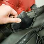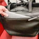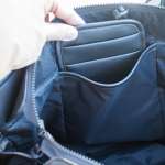 また、背面側のハンドル付け根にはジッパー付きのポケットが配置されています。スマホが縦にすっぽり入るくらいの深さがあり、財布や鍵などの貴重品を入れておくのにうってつけです。