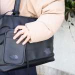 着こなし“だけ”に関していえばシルエットを気にするのですが、リュックを背負った姿までは想像できていませんでした。また、ダウンにリュックだとアウトドア感が強くなるのも気になるところ。ダウンを大人っぽく都会的に着たい人にはトートバッグがうってつけです。