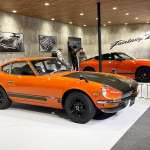 ▲日産自動車は、フェアレディZ432R(手前)と、大型カーボンスポイラーやむかしふうのデザインの19インチアルミホイールなど専用パーツ装備のフェアレディZカスマイズドエディションも展示