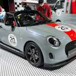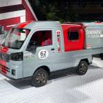 ▲「ハイゼットトラック・ジャンボエクテンド」はキャビンを伸長させることでドライバーが休憩できるスペースになるレース仕様のコンセプトで仕上げた「コペン・クラブスポーツ」とともに、モータースポーツの一シーンがテーマのようでした