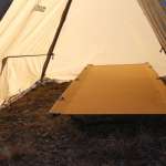 両側を張り綱で引っ張るので、ずいぶん広く感じます。それに幕がガバッと開くから、コットみたいな大きなものだって無理なく収められるんですね。
