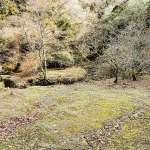 四方が山に囲われ、このサイト部分だけポッカリと平地がある、秘密の場所のような感じ。サイトには砂利が敷かれていて、ペグの刺さりも程よい感じです。山が壁になるので、強風の心配もあまりなさそう。