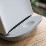 そして、スタンドも大きい。ぽてっとしたシルエットです。これ実は中に冷却用のファンが内蔵されているため。スマホを急速充電するとどうしてもバッテリーが発熱してしまいます。その熱によるバッテリーの劣化を防ぐために、スタンド下部に設けられたスリットからファンの風を出し冷却する仕組みになっているというわけです。