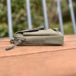 こちらはバックルで閉じられている前面スペース。先程同様、ある程度のスマホは入るサイズ感ですので、こちらにスマホを入れて、メインスペースには財布やハンカチ、ティッシュなどを収納する…みたいな使い方ができます。