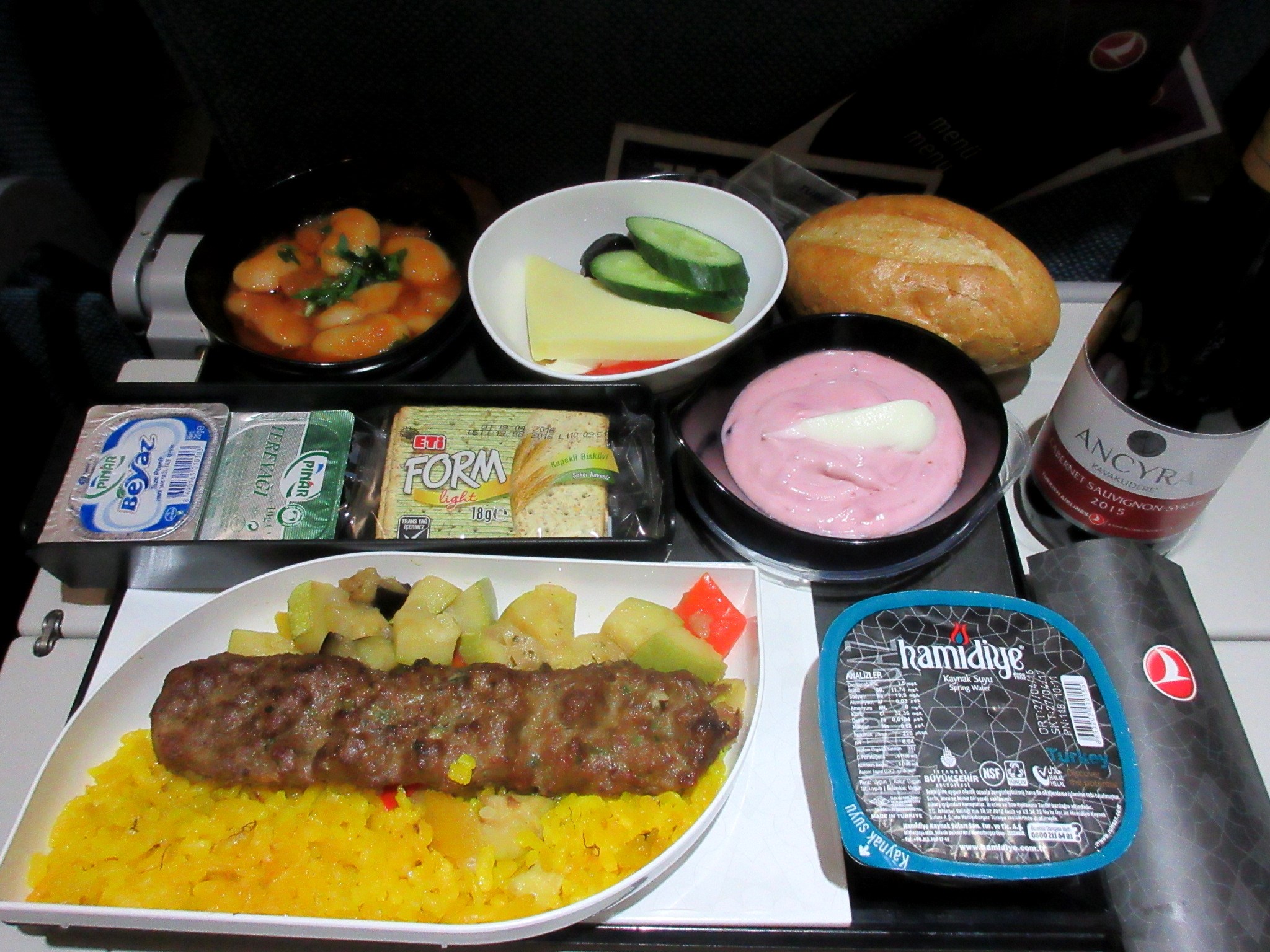 ちなみに、トルコ航空の機内食には豚肉は含まれておらず、メニューにもちゃんと記載されています。豚肉がタブーなのはイスラム教ですが、トルコはイスラム教徒が多いので、トルコ航空ではメニューに豚肉製品を使っていません。