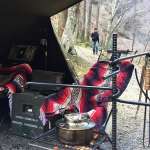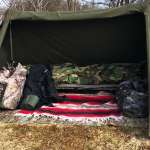 ひとつ目はラグとしての使い方。無骨な軍幕でもラグを使うことで差し色としてサイトが鮮やかになりませんか?