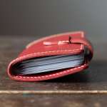 購入した「ベルトカードケース」は、本をめくるようにカードを探せるブックタイプで、1枚革がベルトで留められているだけのシンプルな構造。