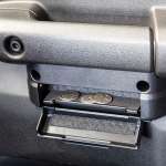 現行型のジムニー/ジムニーシエラになってからというもの、ドアポケットにモノが入れられなくなってしまった。特にコインが入れられなくなったのは、有料道路の料金所ではかなり不便。しかも、現行モデルではダッシュボード周りにも小物入れがなく、シフトレバー(セレクターレバー)の前にわずかなコンソールトレイがある程度だ。