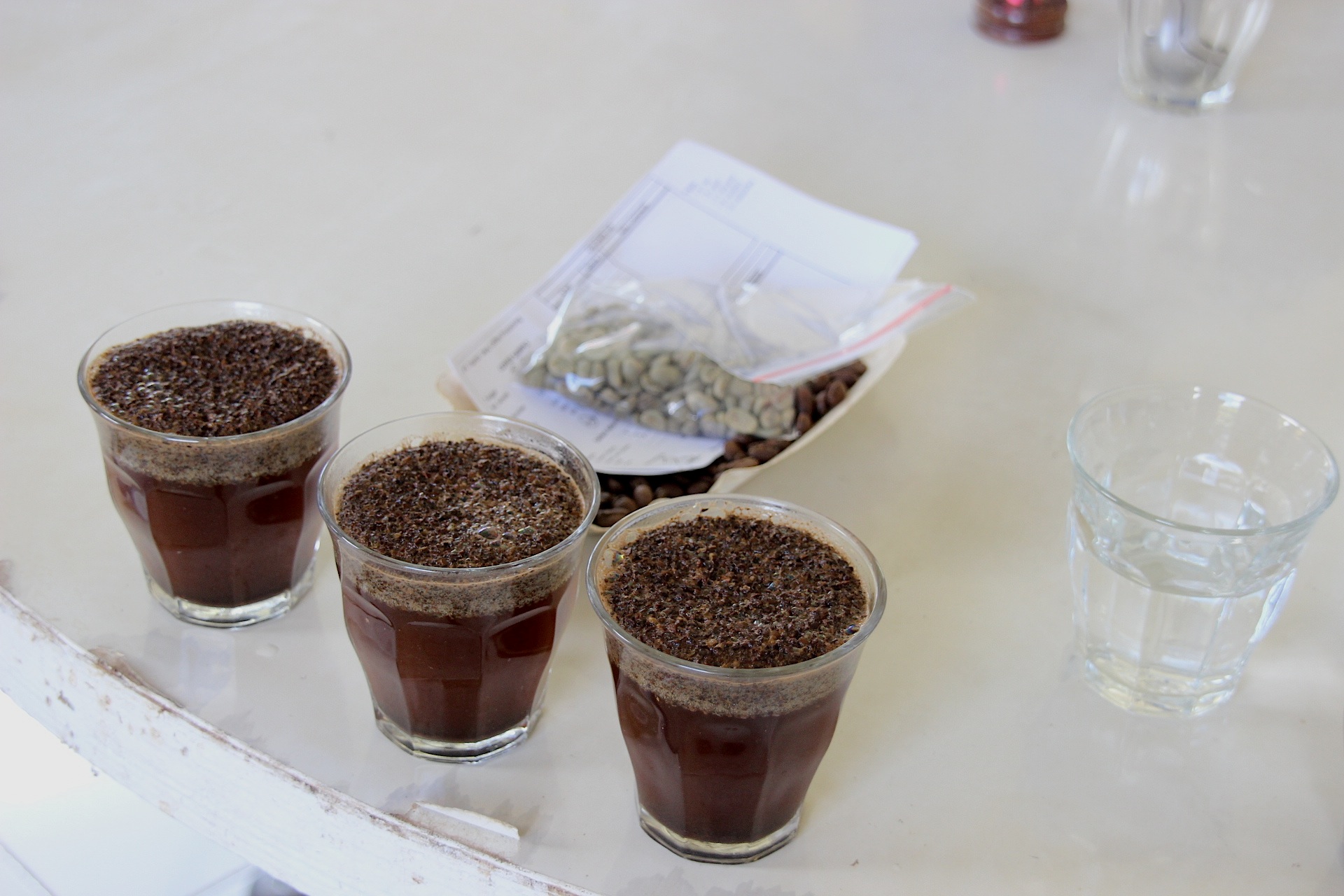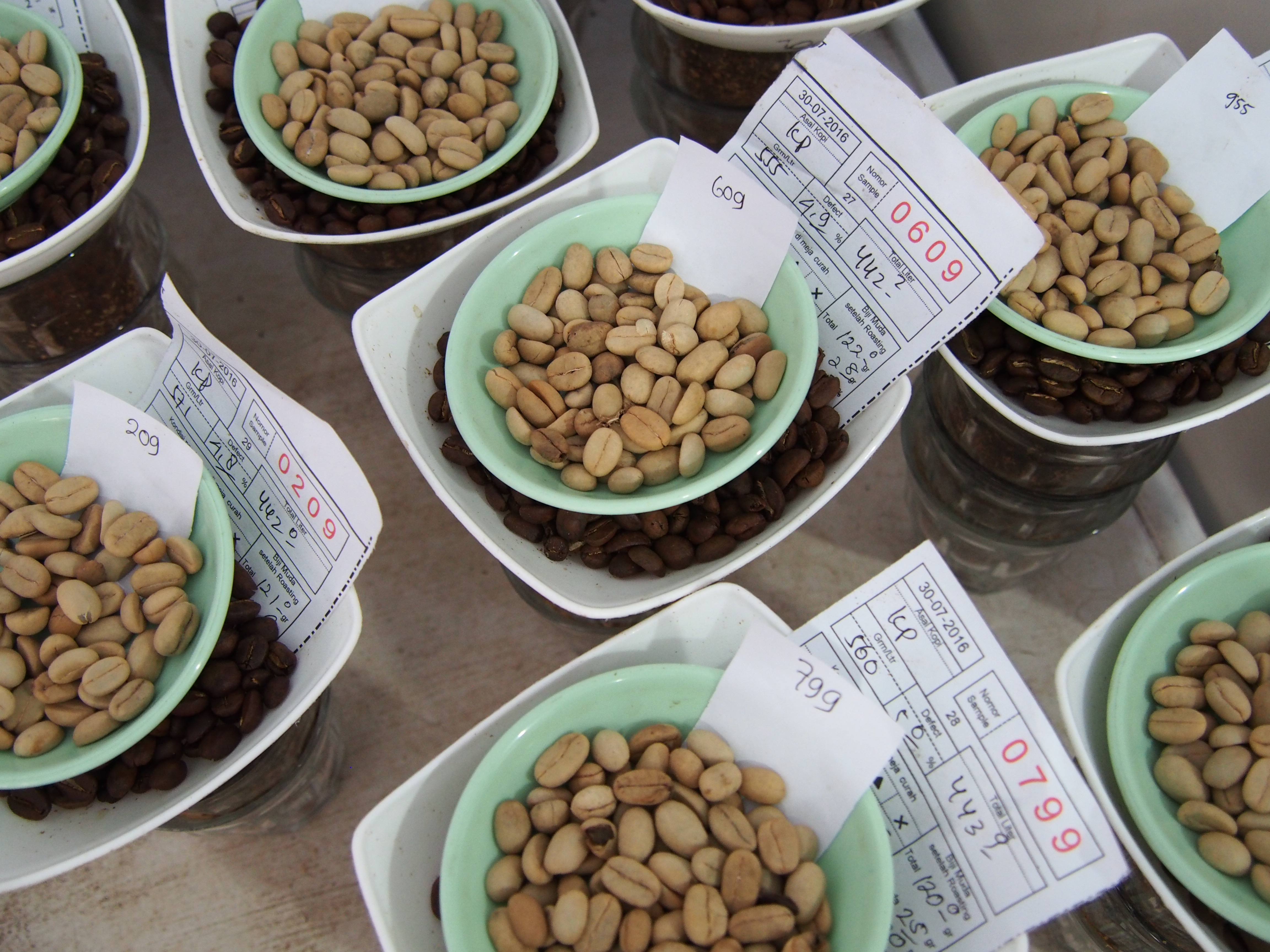 生産者ごとに、カップテスト用に用意されたコーヒー豆