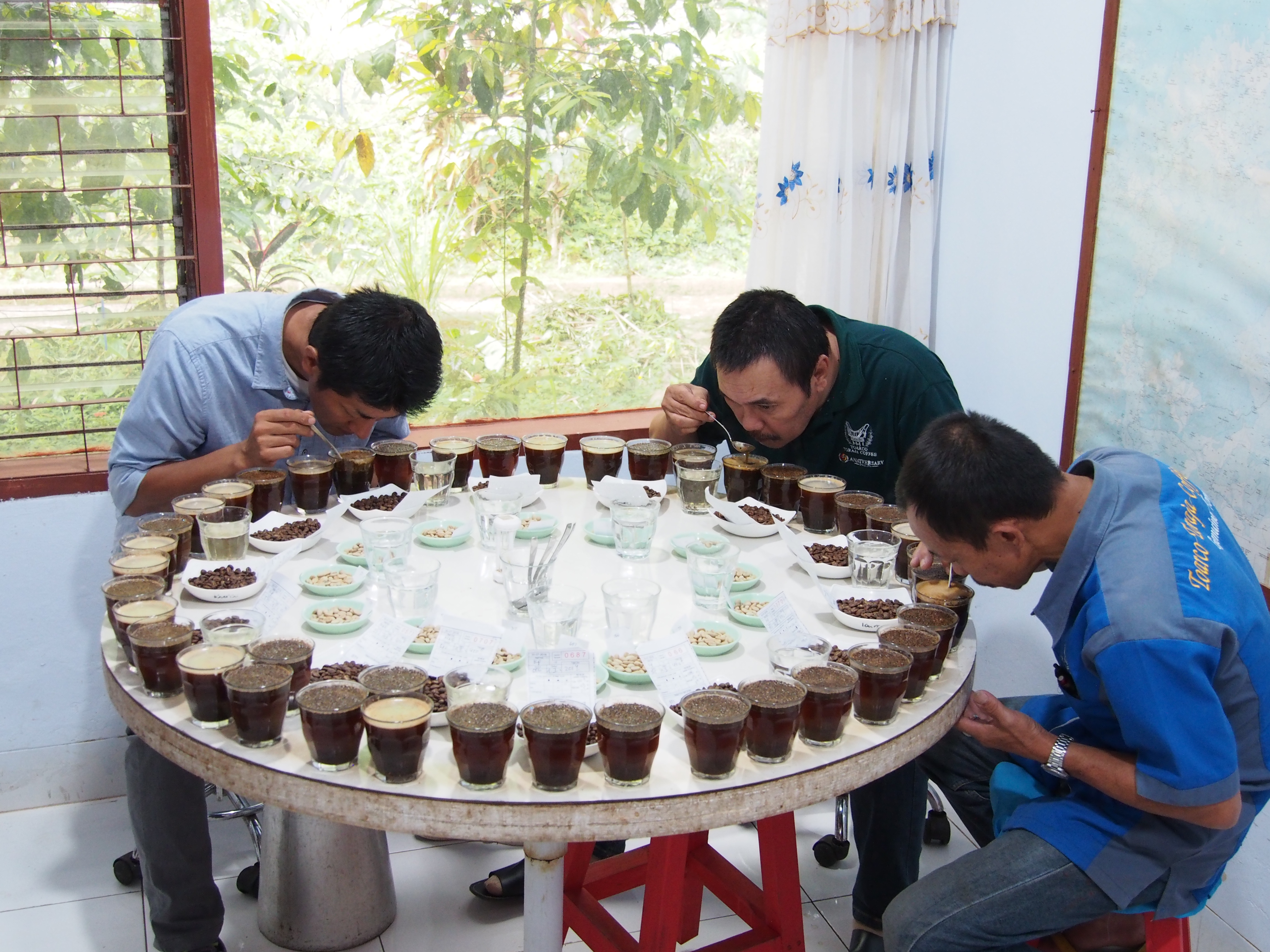 買い付けたコーヒー豆は、ランテパオという街にある事務所で、徹底して品質管理が行われます。ここでは集買所で買い付けた豆、仲買人と呼ばれる仲介業者から持ち込まれた豆などすべての豆の品質管理をしているそうです。