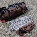 ▲収納サイズは78×27×H27cm、重量12kg。フライとインナー、アルミ合金のポールとペグ、張り綱というシンプルな構成