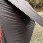 フライシートの窓部分を写真のように張り綱で引っ張れば、雨の日でもフレッシュな空気を取り入れられます。肌寒い時期は全閉に、そして隣にキャンパーがいなければ大きく巻き上げるなど、状況に応じてアレンジOK。