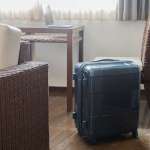 よくスーツケースの選び方で、機内持ち込みのサイズ(スーツケースの高さ、幅、奥行きの3辺が115cm以内)を選びの基準とする場合がありますが、今回持って行った容量52LのモデルはH56×W44×W29cmで、機内持ち込みはできないサイズです。が、いつも預けてしまうので特に問題はありません。