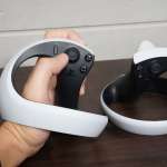 PSVR2の専用コントローラー「PS VR2 Senseコントローラー」(以下、コントローラー)が付属。通常のデュアルセンスのボタンを左右に分けただけでなく、ポジショントラッキング用のIR LEDを搭載しているのでゲーム中に手の位置も認識します。