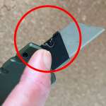 とはいえ、そこはカッターナイフ。ブレードは台形型のもの。あまり日本では馴染みがない形ですが、アメリカではポピュラーなようです。日本でもAmazonなどのネット通販で100枚2000円以下で購入が可能です。
