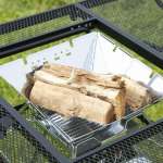 テーブルをローにしたときでも、焚き火を載せるセンターテーブル部分は地面から15cmほど距離があります。アイアンメッシュなので長時間使っていると細かな灰や炭は転がり落ちるかもしれませんが、物理的に距離をとるので地面への熱の影響はまずありません。