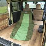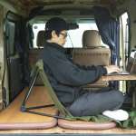 車中泊ではフロア一面をフラットにして、マットを敷き詰めます。「ラウンジャー GL チェア」は座面にパッドが入ってないので、どうなのかと思いましたが、これが都合がいい。敷き詰めたマットのおかげでおしりがいたくなることはないし、長さがあわなくてもしなやかなシートなのでくるっと丸めるかたたんでおけばいい。