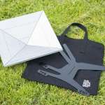 付属のキャリングバッグは厚手のコットン製トートで、中に入っているのは本体と脚のみというシンプルさ。マチなしトート型バッグなので正確な収納サイズは計れませんが、おおよそ41×41×12cmといったところ。