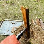 皮面が上にくると着火しにくくなりますので、必ず皮でない方を上にするようにしてください。皮面は乾燥が十分ではないことが多く、着火しにくくなります。