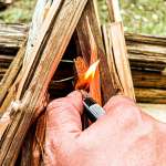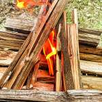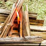 もし、この段階で火が消えてしまう方は、焚き火の組み方に問題があったり、薪が湿っていたりなどが考えられます。もう一度、手順を見直し、ちゃんと1番の薪を着火剤に近いところに並べているか、いきなり太い薪をくべてないか? などを確認してください。