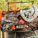 4番まで投入し、しばらく待つと、すべての薪が炭化した状態になります。このようになったら、調理が開始できます。まだ炭化していない状態で調理、特に焼き物をすると、真っ黒い煤が食材について、美味しく焼けません。ちゃんと炭化させてから調理しましょう!