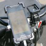 パナソニック製の電動アシスト自転車には、自車位置を把握するためのGNSSアンテナと受信機、ITS用の通信機・アンテナなどが装備されており、電力はアシスト用のバッテリーから供給されます。ITS対応無線機からの情報は、スマホに表示される仕組みになっていました。