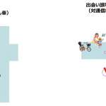 見通しの悪い交差点に向かって走行する電動アシスト自転車と、別方向から同じ交差点に向かうクルマの双方にITS対応無線機を搭載。お互いが接近していることを知らせることで、事故を未然に防ぎます。