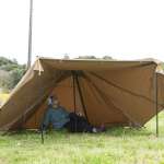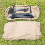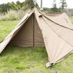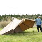 シェルターも陣幕もはっ水加工を施したT/C製で、スチールペグを同梱しているので、コンパクトなサイズですがズッシリ。ソロ用テントだし…と軽い気持ちで手に取ると、肩がもげそうに思えます。