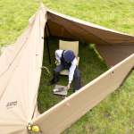 後部がガバッと開くので、夏の風通しも良好。ただし、雨の日は無防備なので、後部ファスナーを使って出入りすると寝袋が水浸しになる危険あり。ご注意を。