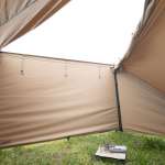 他社では一時、講習を受けた人だけが手にできる炭火対応シェルが発売されていましたが、「HORUS SOLO T/C」はそういった縛りは一切なし。誰もがSOTO製ガス器具を使えるテントというのは画期的なコンセプトです。