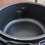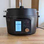 これが想像以上に大きかった。サイズは幅32cm、奥行き33.4cm、高さ23.2cm。5.5合炊きの炊飯器より幅があり、キッチンに置くと存在感はかなりのもの。でも(きっと)、大は小を兼ねる! そして煮物はたくさん作ったほうがおいしい! だから後悔はしてませんが、電気圧力鍋購入の際は置き場所のチェックをお忘れなく。