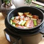 豚の角煮は約1時間、炊飯器も普通モードで炊けば1時間近くかかるので、電気圧力鍋で調理開始してから米を研いでセットすると、1時間後には両方完成するというわけです。