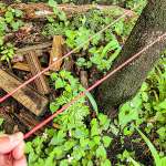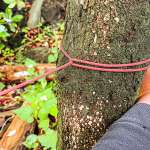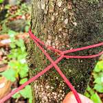立木が太すぎると少しやりにくいので、直径5cmくらいまでがちょうどいい太さです。ペグに固定するのはやりやすいと思います。
